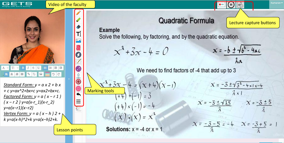 Store and access course content (PPTs, PDFs, videos) and recorded sessions categorized by department, course, subject, and lessons.